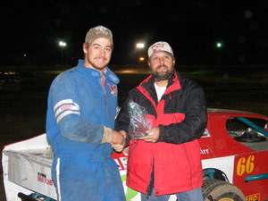 Rod Talbot blew up his engine on Saturday night after helping the #66 of Ricky Bobby win the Main Event on Friday night, but hopefully he will have his #52 car back out for the 2009 IMCA season.